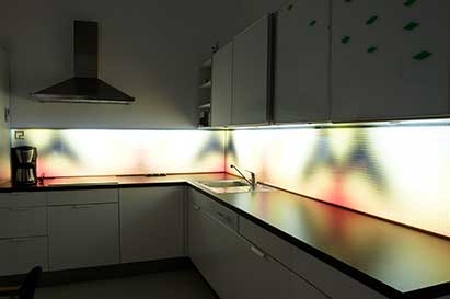 Die hinterleuchteten Küchenrückwände aus Glas von picturelight, maßgenau gefertigt und mit Ihrem persönlichen Motiv versehen, verwandeln die nur 16 mm tiefe Rückwand in das strahlende Herzstück Ihrer Küche.